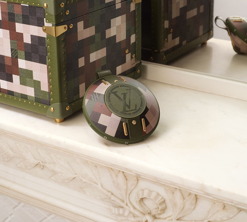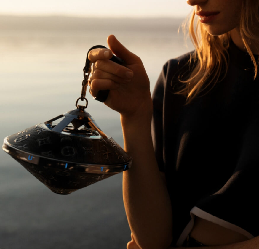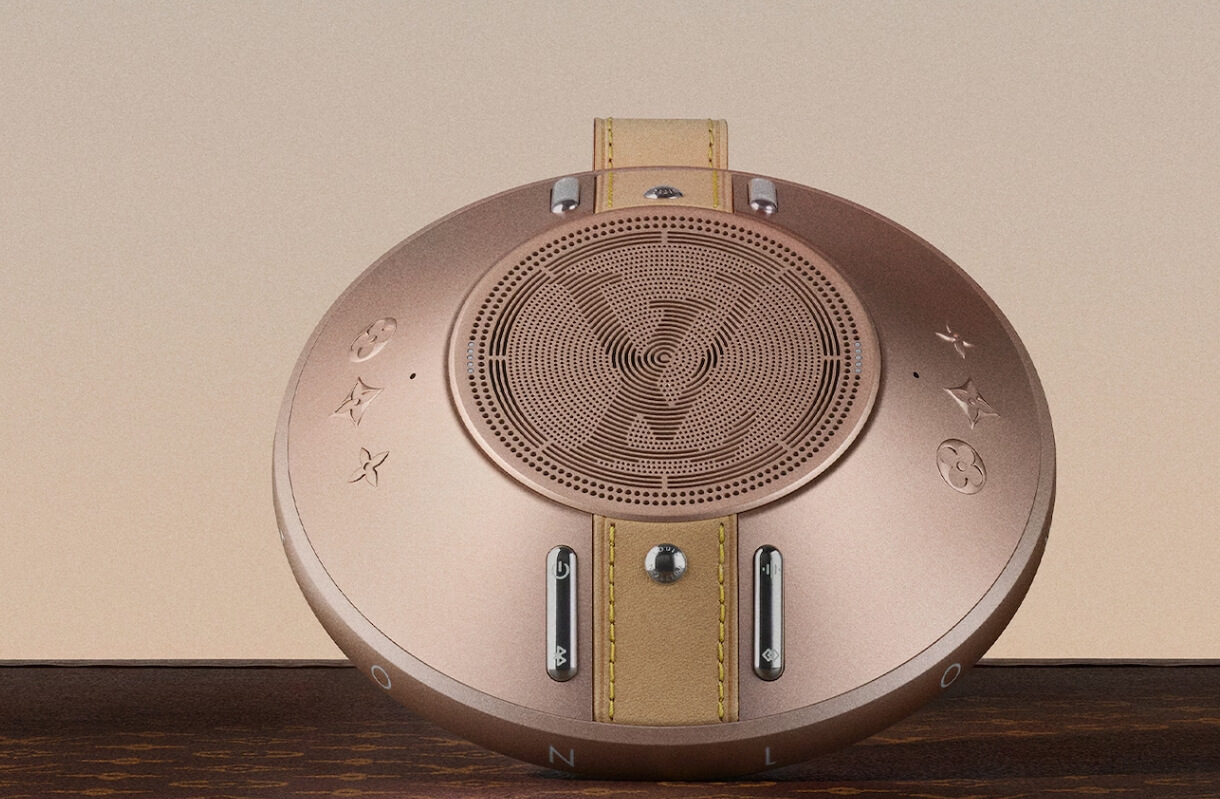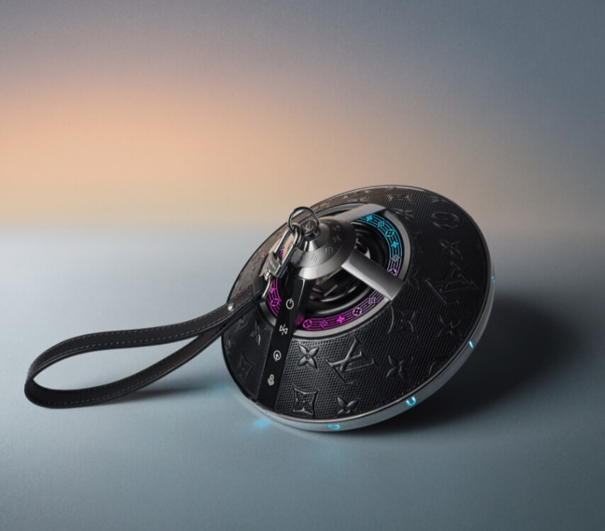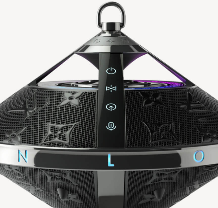 이 스피커는 루이 비통의 여성복 아티스틱 디렉터인 니콜라스 게스키에르가 디자인했던 팽이 모양의 투피 핸드백에서 영감을 받아 만들어졌다고 합니다. 정말 팽이가 생각나지 않나요? 저는 UFO가 생각나기도 합니다.