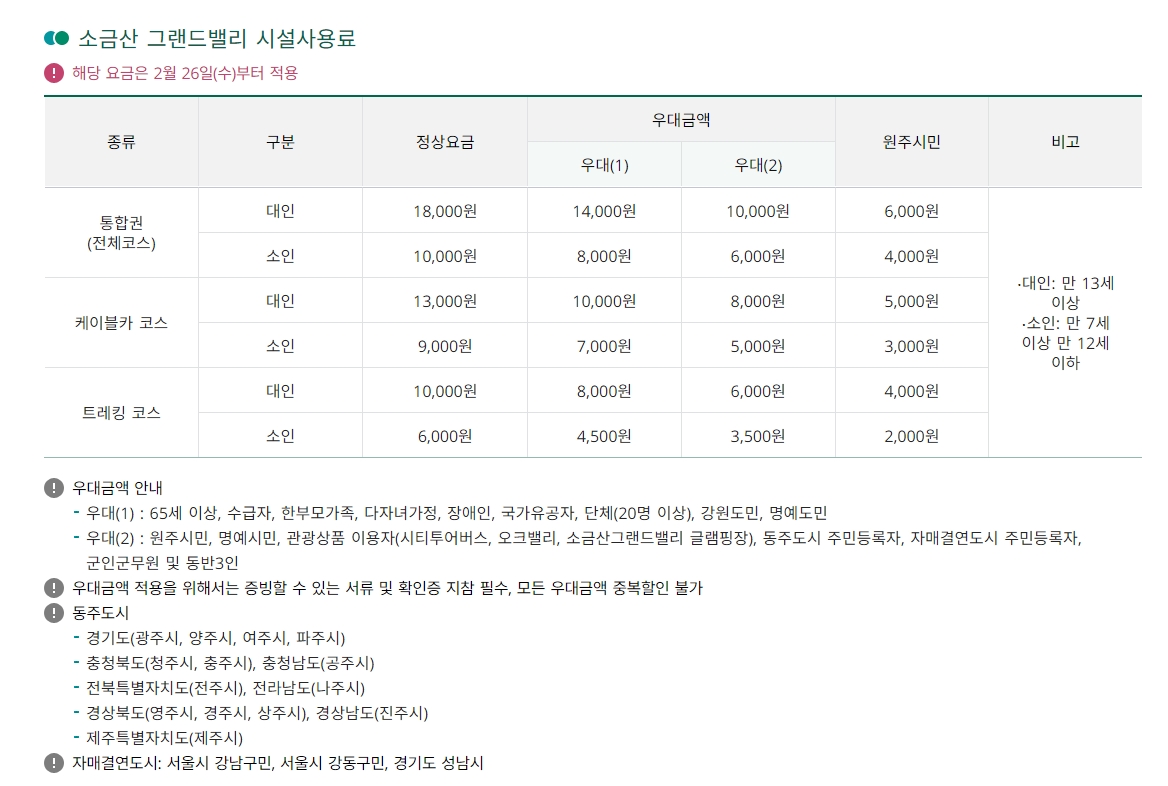 입장료는 성인 9,000원에서 18,000원으로 약 두 배가량 올랐네요~그리고 케이블카 코스가 생겨났습니다. 동주도시와 자매연결도시 주민등록자는 우대를 해주는 새로운 혜택이 생겨났으니 확인해 보세요~!