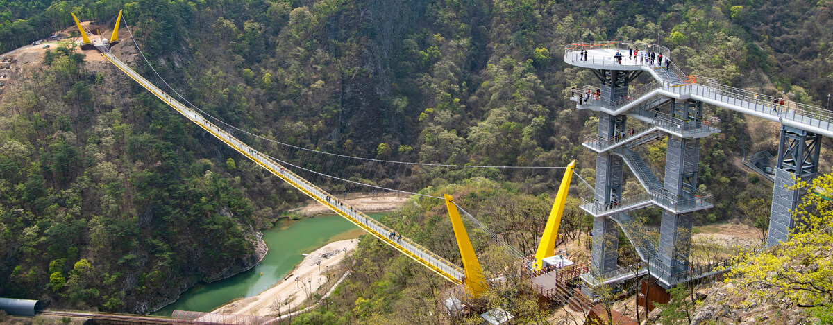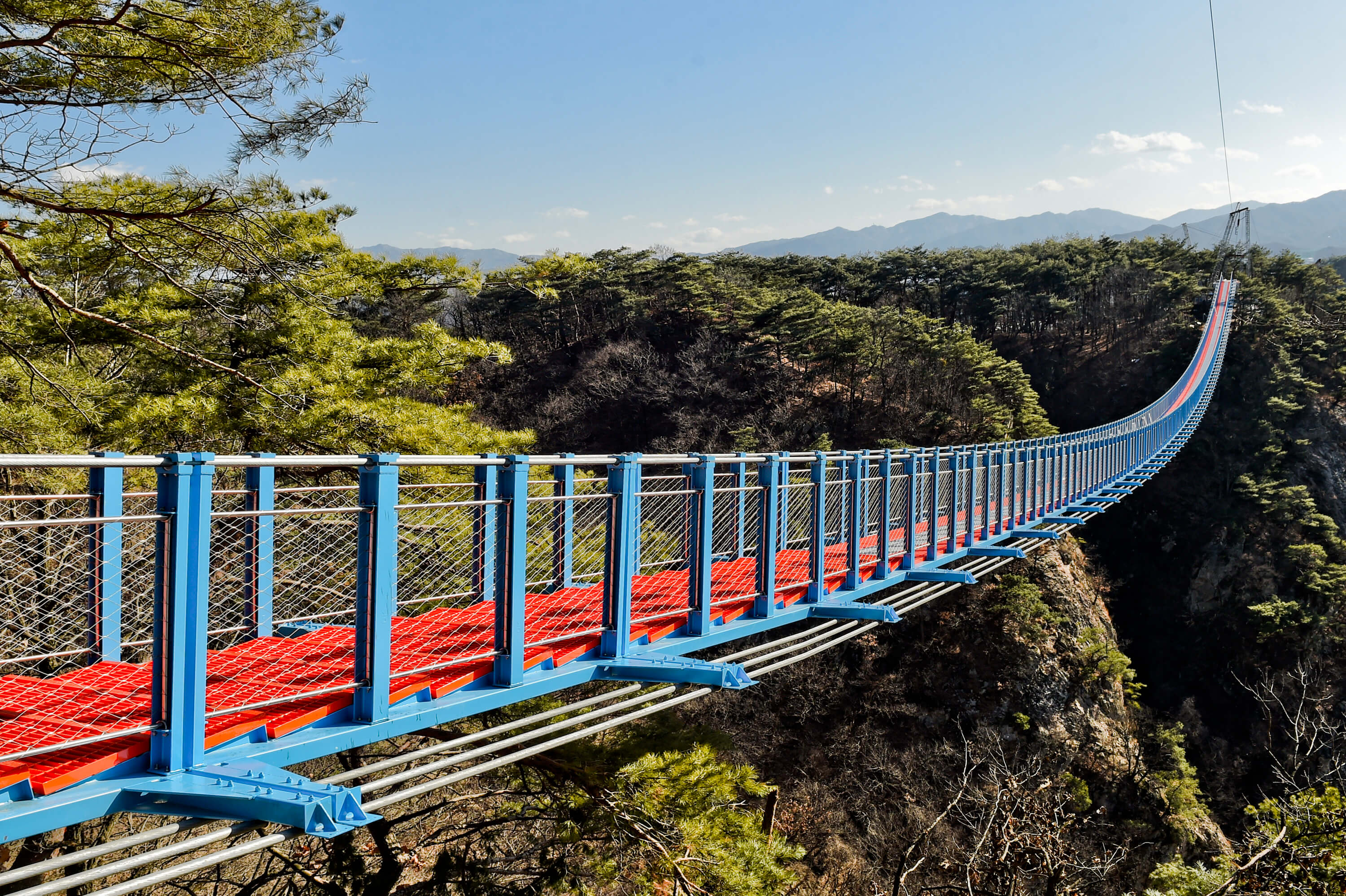 강원도의 아름다운 자연을 한눈에 감상할 수 있는 소금산 출렁다리가 봄. 가을 여행지로 각광받고 있습니다. 404미터의 웅장한 길이와 2미터의 폭을 자랑하는 이 다리는 짜릿한 스릴과 함께 환상적인 풍경을 선사합니다.