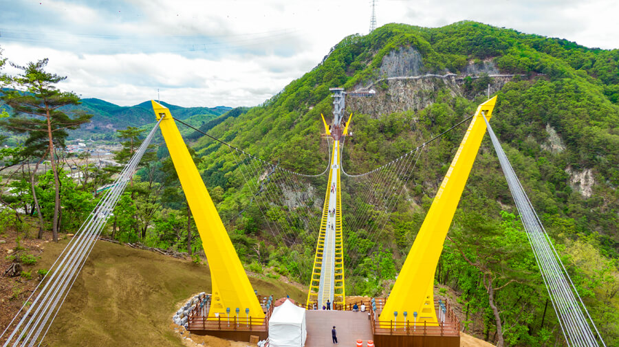 - 케이블카 코스란? : 케이블카(왕복)-소금산출렁다리-하늘정원-하늘바람길-케이블카