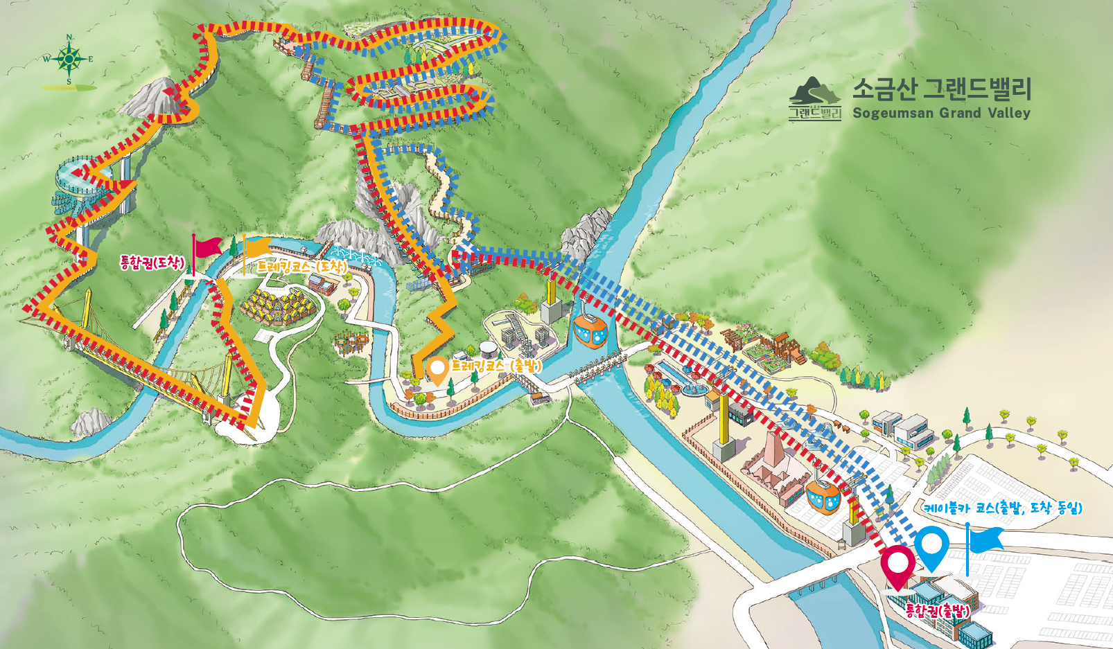 - 통합권이란?(전체코스) : 케이블카(편도)-소금산출렁다리-하늘정원-데크산책로-소금잔도-스카이타워-소금산울렁다리-에스컬레이터