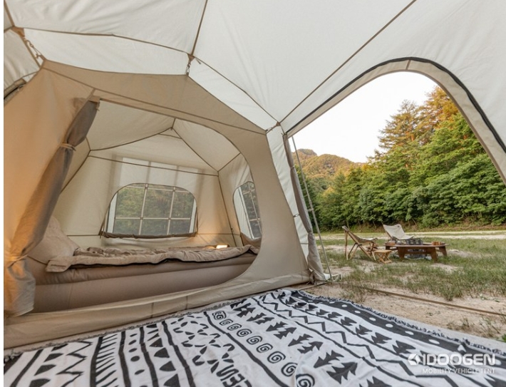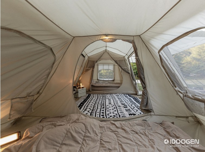 아이두젠 텐트는 캠핑 외에도 다양한 야외 활동에 유용하게 사용할 수 있어 활용도가 매우 높습니다. 특히 별도 타프 없이도 그늘 확보가 가능하다는 점은 돋보이는 장점이에요.