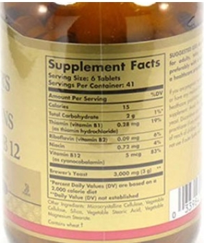 - 제품명: Solgar Brewer’s Yeast 7½ Grains with Vitamin B12